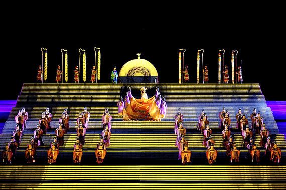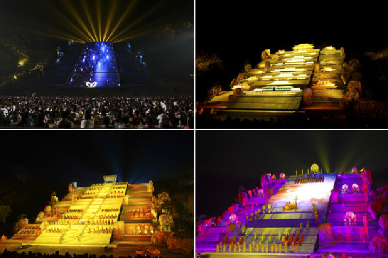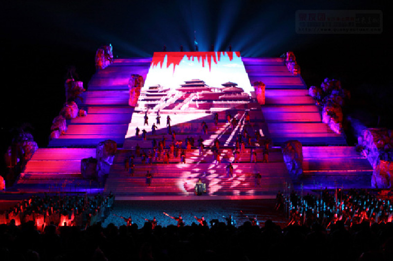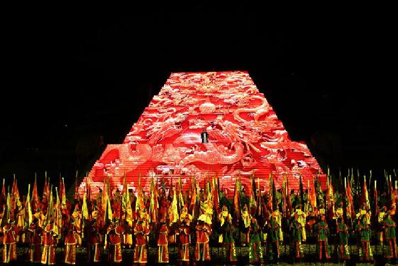 唐朝是中国历史上最强盛、最开放的朝代。“开放与气度”是这一幕表演的主题。唐高宗的封禅大典,是历史上规模最大,也是最辉煌的一次祭典,完整的再现一整套皇家仪仗将成为这幕表演中的一大亮点。在皇家仪仗的引领下,封禅的队伍里出现了大量的各国使节。他们穿着鲜明的民族服饰,跳着新奇的各国舞蹈,表达对大唐文明由衷的敬意。这幕演出的另一个亮点在于武则天和唐高宗共同主持封禅大典,一主封天,一主禅地的戏剧化情节。这是一次中国妇女在国家大典中担任主角的表演。对这种戏剧化情节浓墨重彩的演绎,将使演出走向一个高潮。