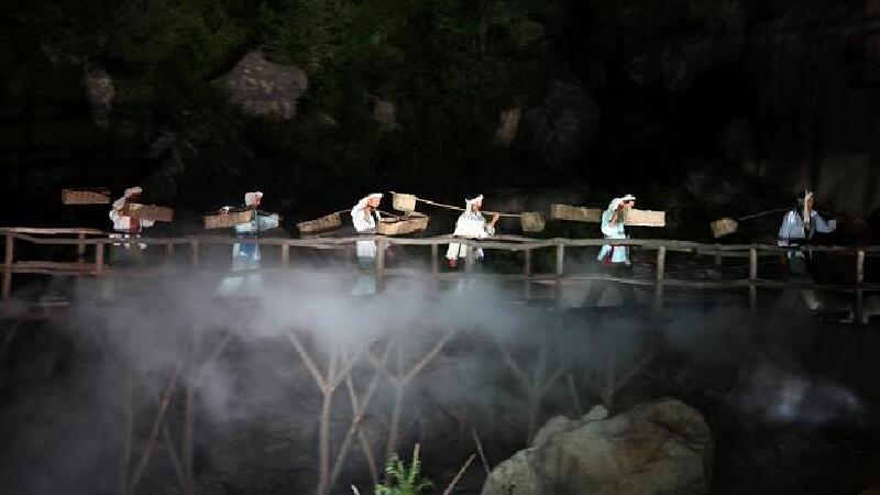一切喧闹归于寂静。我们将看到泰山山道上的一队挑夫。他们挑着沉重的担子向山顶一步一步地迈进。老者的故事讲完“秦始皇走了、汉武帝走了、女皇武则天走了、写字画画的真宗皇帝、骑马打江山的康熙爷都走了,只有泰山还在我们还在••••••”观众在庄严的祈福音乐中,与700位演职员一起祈福,祈求国泰民安,祈求家人和自己平安、幸福!